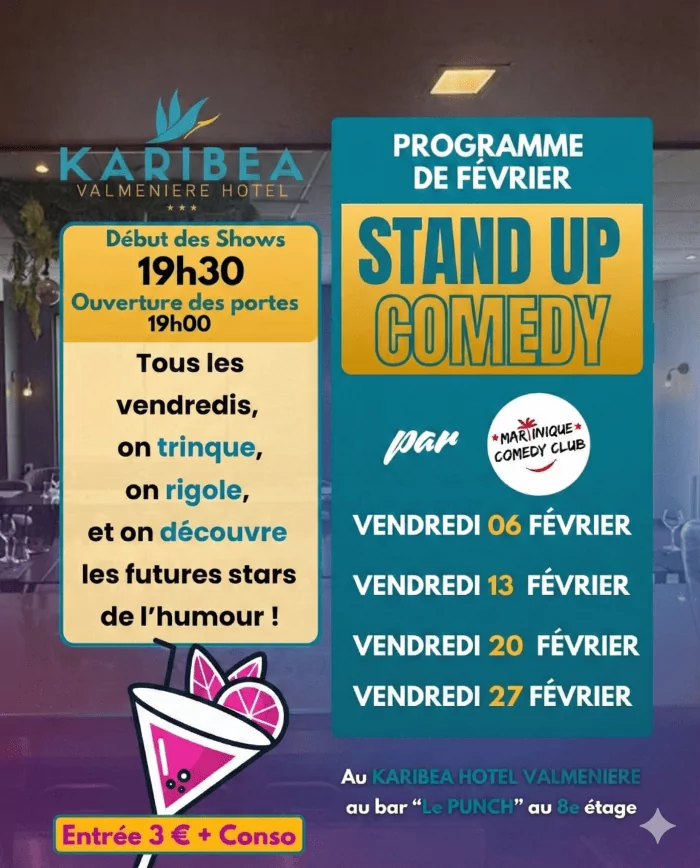 SOIRÉE « STAND UP COMEDY » PAR MARTINIQUE COMEDY CLUB AU KARIBÉA VALMENIÈRE HÔTEL, FORT DE FRANCE