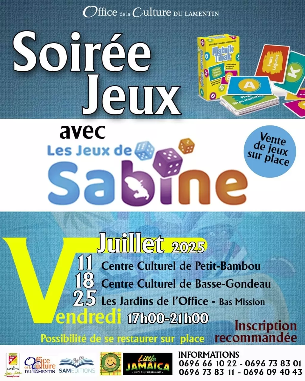 SOIRÉES JEUX « LES JEUX DE SABINE » PAR L’OFFICE DE LA CULTURE, LE LAMENTIN