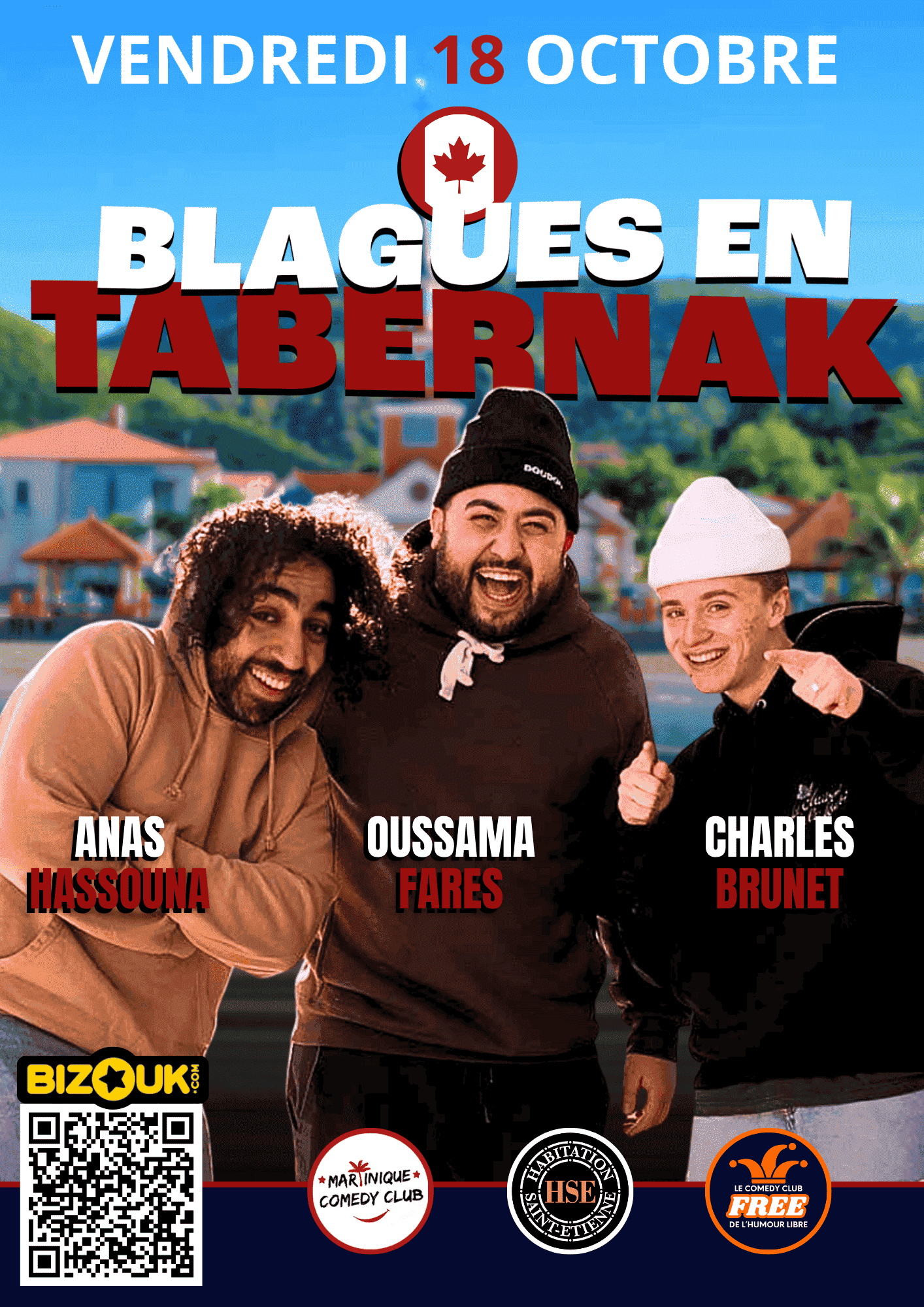 Ils reviennent ce 18 Octobre en Martinique pour vous servir le plateau Blagues en Tabernak au Free Comedy Club. Tabernak, viens rire avec nous !