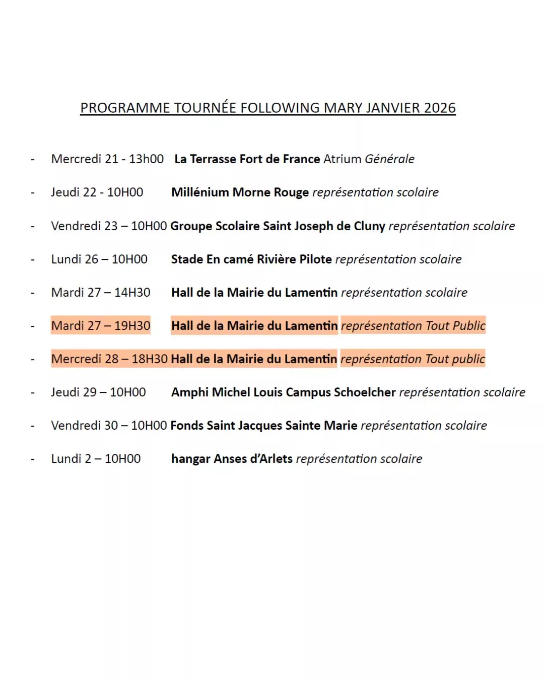 SPECTACLE EN ANGLAIS « FOLLOWING MARY » À LA MAIRIE, LE LAMENTIN