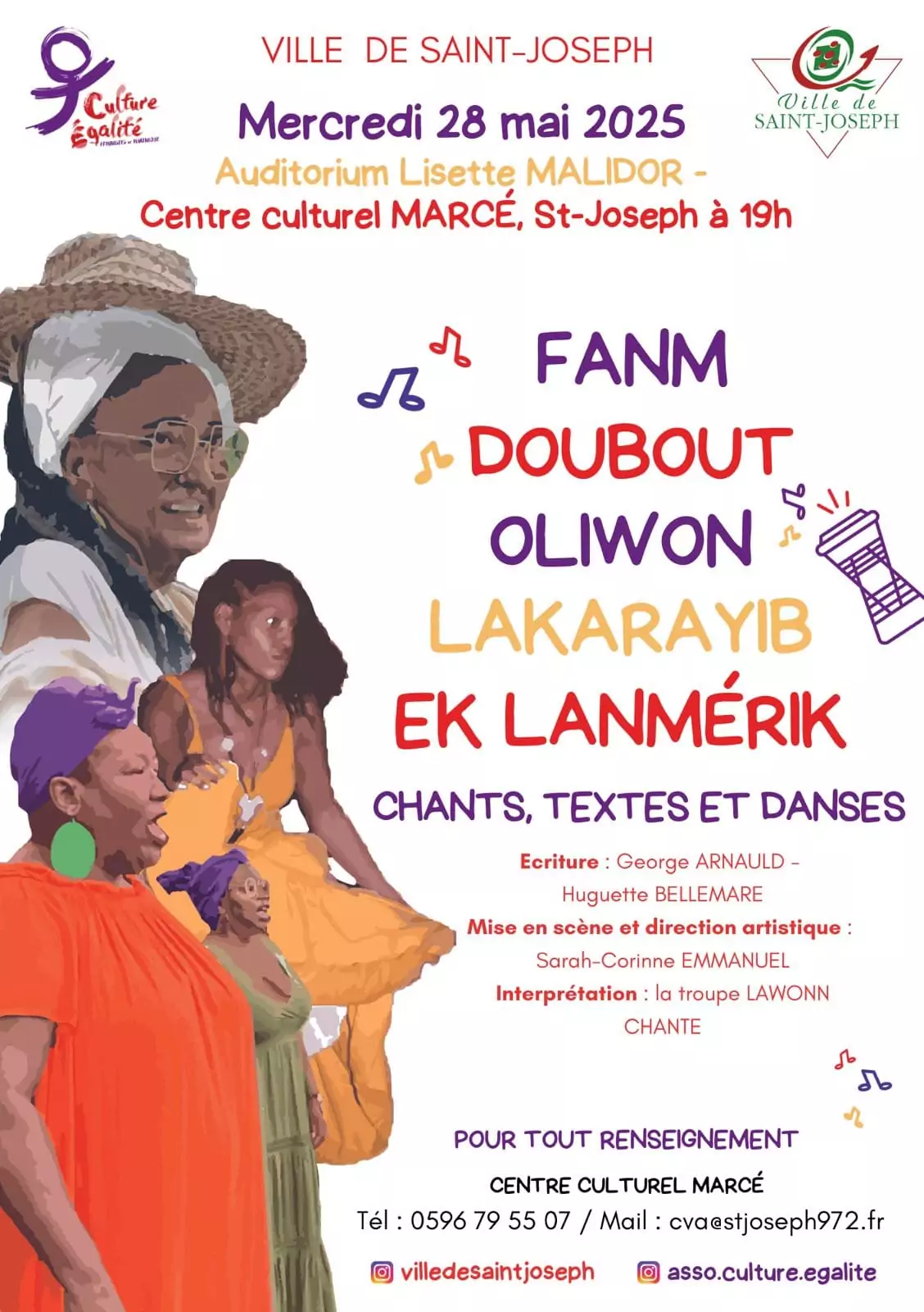 Soirée culturelle d’exception, placée sous le signe de la mémoire, de la résistance et de la fierté caribéenne, avec la présentation du spectacle : « FANM DOUBOUT OLIWON LAKARAYIB EK LANMÉRIK »