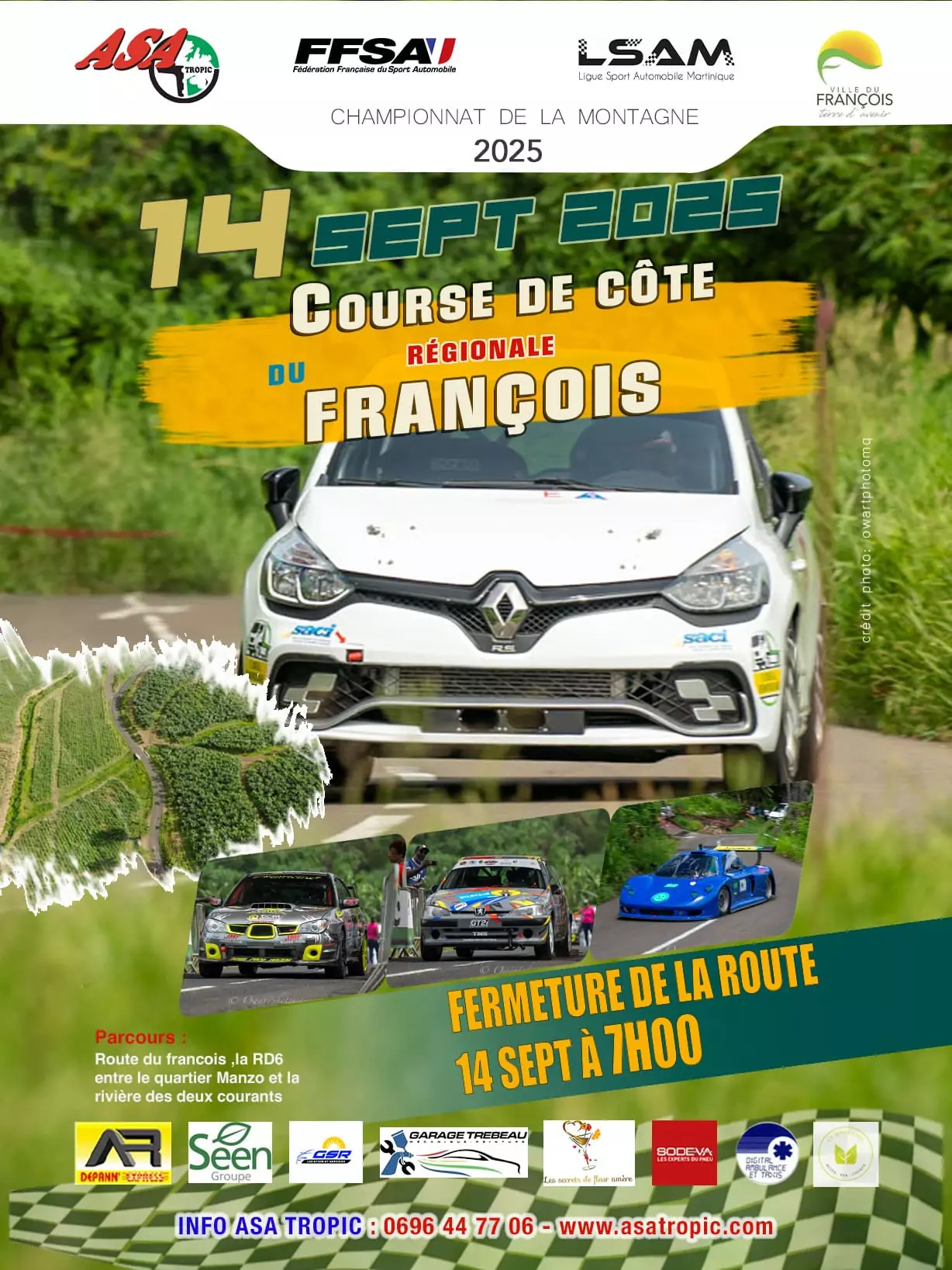 Rendez-vous dimanche 14 septembre sur la RD6 au François, Ville du François pour vibrer ensemble au rythme de la rentrée du sport automobile