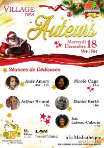 Profitez de notre Village des auteurs ce mercredi 18 décembre, de 9h à 18h pour venir à la rencontre de plus d’une 15aine d’auteurs qui auront plaisir à échanger avec vous et à vous dédicacer leurs œuvres durant cette journée exceptionnelle.