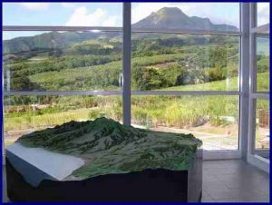 Venez survoler la Martinique avec la carte de la Martinique sur le sol à l’échelle 1/10 000 faisant 6 m x 6,30 m résultant de l’assemblage de 1600 ortho photographies prises à partir d’un avion.Ces clichées montent la grande diversité des paysages insulaires, la répartition humaine et la mise en valeurs de l’espace.Les visiteurs peuvent circuler librement sur la carte et retrouver ainsi certains lieux, leurs maisons, le CDST…
