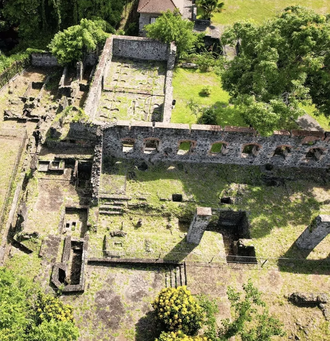 Patrimoine bâti d’une ancienne Habitation-sucrerie du XVIIe siècle : chapelle, maison et bâtiment, monastère, ruines et vestiges, site archéologique.