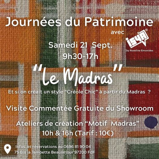 -Deux ateliers de création « Motif Madras » : samedi 21 septembre à 10h & à 16h