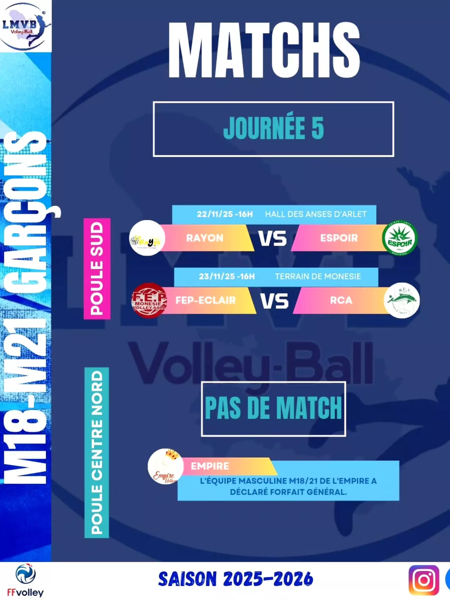 VOLLEY-BALL « CHAMPIONNAT M18, M21 & SÉNIORS »