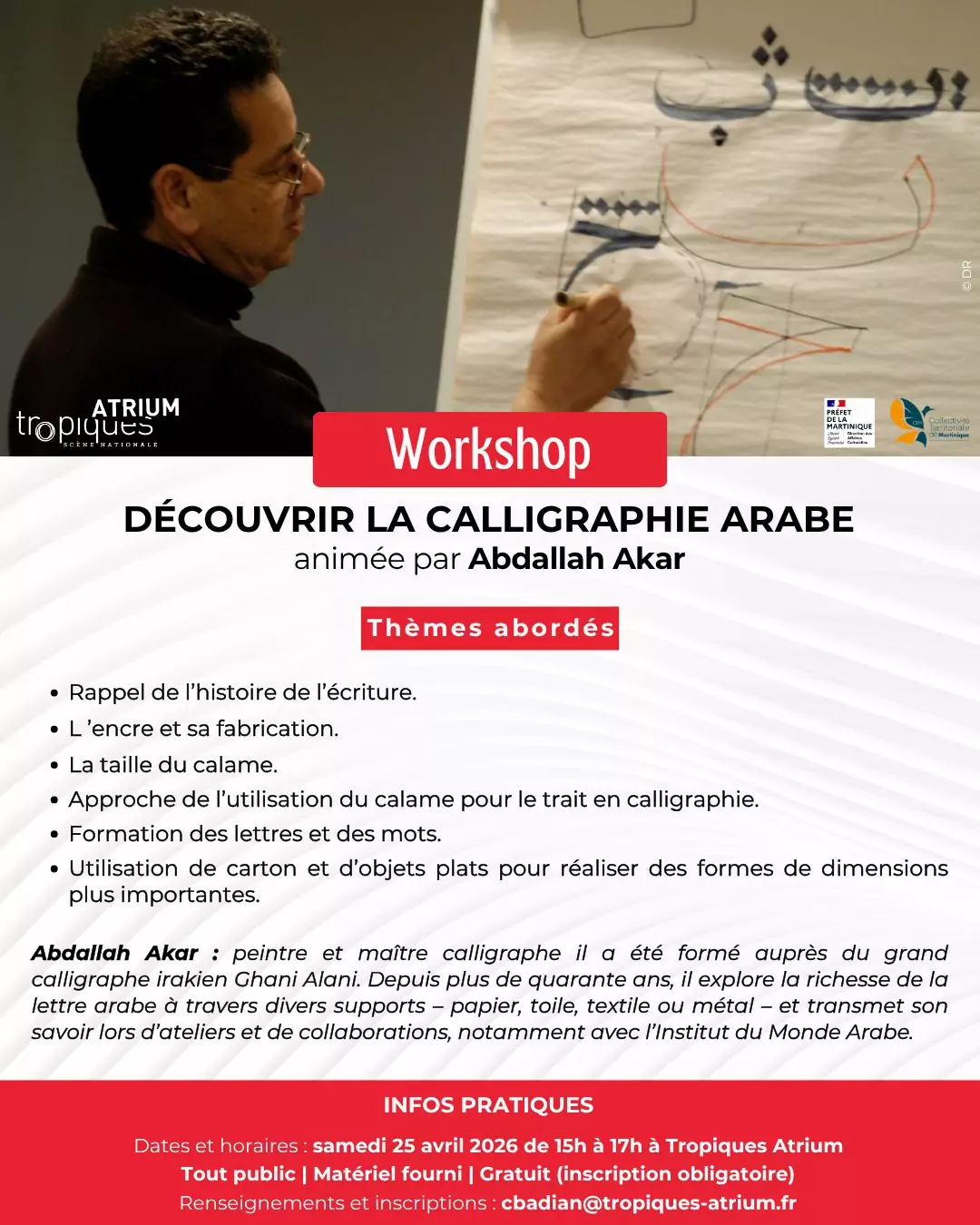 WORKSHOP « DÉCOUVRIR LA CALLIGRAPHIE ARABE » À TROPIQUES ATRIUM, FORT DE FRANCE