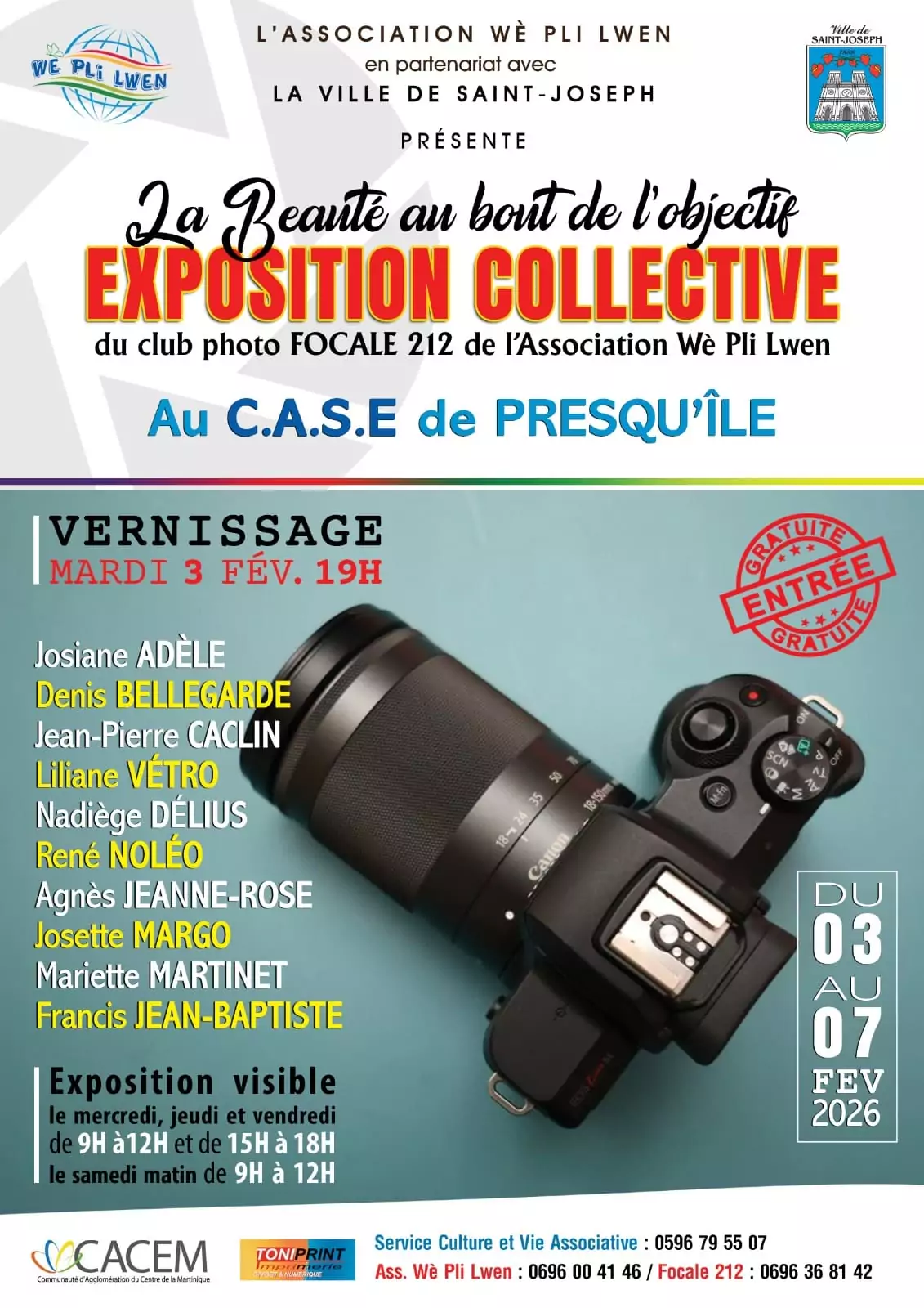 Exposition photos – “La beauté au bout de l’objectif” Une exposition portée par l’Association Wè Pli Lwen. Vernissage le mardi 3 février à 18h. Ville de Saint Joseph