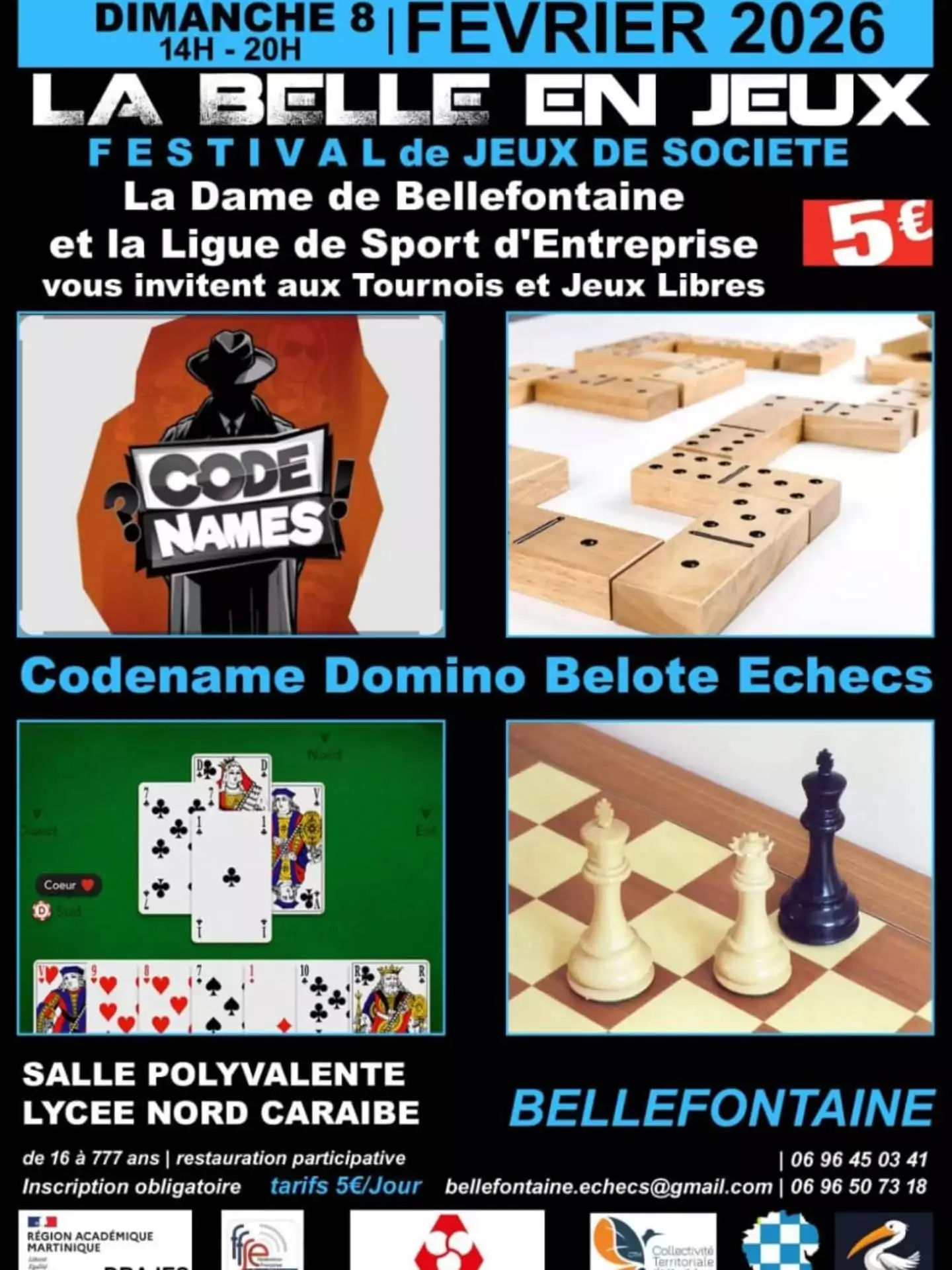 Participez au Festival Jeux de société avec La Dame de Bellefontaine et La Ligue de Sport d'Entreprise ! Inscription obligatoire avant le mercredi 04 fevrier 2026 à partir du lien suivant :https://forms.gle/B7328THcJJibdfQb7 Contactez l’adresse au [...] |
