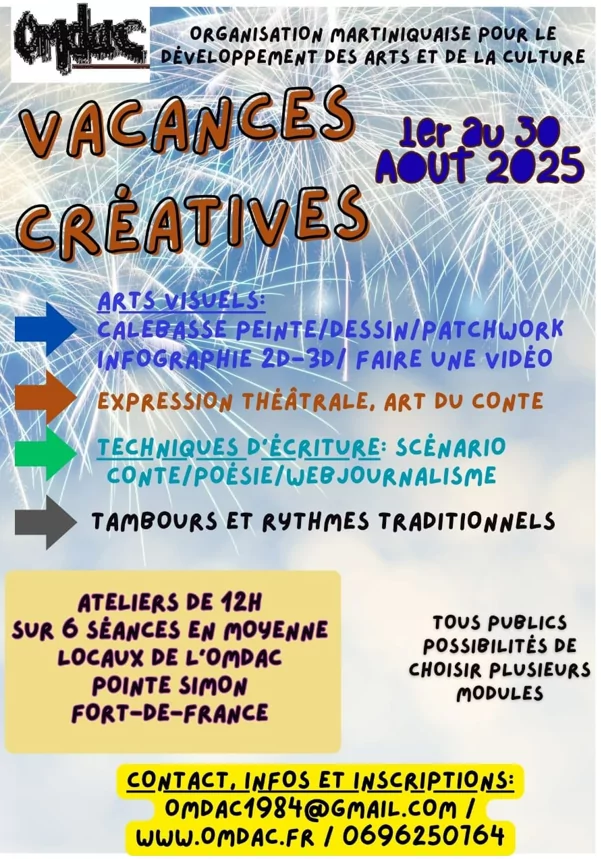 ![]() Espace Camille Zozo de Séguiran, rue Jules Ferry, Ducos Art, Enfance, jeunesse et paysages. Scène Conventionnée d’Intérêt National, et itinérante en Martinique Espace KORZEMO, ZI Champigny, Ducos, 0696 20 01 18 ![]() 𝗠𝗮𝘁𝗶𝗻𝗲́𝗲𝘀 𝗗𝗲́𝗰𝗼𝘂𝘃𝗲𝗿𝘁𝗲𝘀 𝗦𝗽𝗼𝗿𝘁𝗶𝘃𝗲𝘀 𝗔𝗱𝗼 𝟭𝟭-𝟭𝟱 𝗮𝗻𝘀 𝗮̀ 𝗦𝗰𝗵𝗼𝗲𝗹𝗰𝗵𝗲𝗿 ! 𝗗𝘂 𝟯𝟬 𝗷𝘂𝗶𝗻 𝗮𝘂 𝟯𝟭 𝗷𝘂𝗶𝗹𝗹𝗲𝘁 𝟮𝟬𝟮𝟱, viens t’éclater avec une multitude d’activités sportives et ludiques à Schoelcher ! Accueil : Jardin de la piscine municipale, [...] ![]()