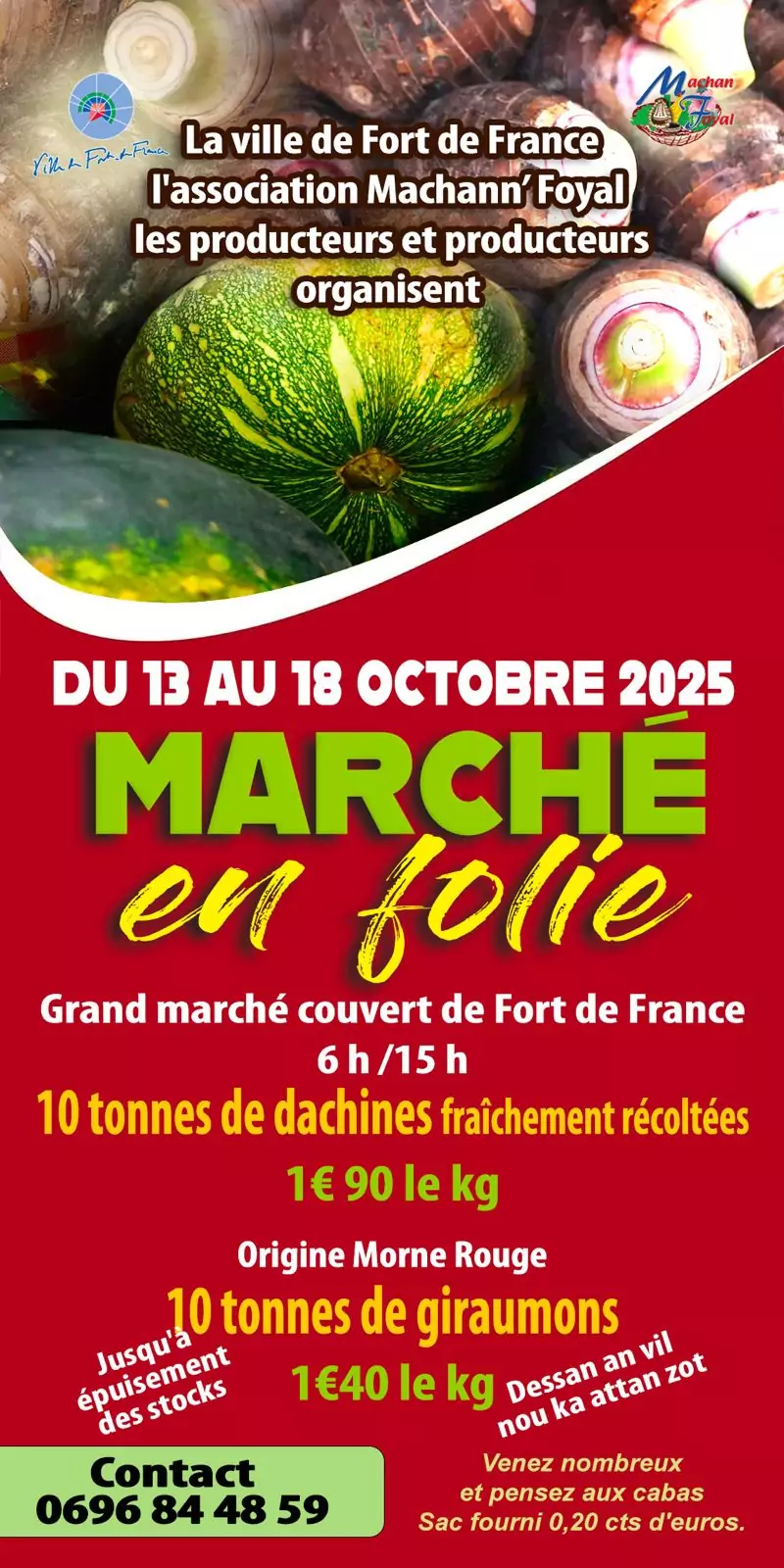 ![]() Tout à 2 € le kilo Foire aux pastèques , citrons , giraumons et dachines, provenance de Case Pilote et Morne Rouge 𝑀𝘶𝑛𝘪𝑠𝘴𝑒𝘻-𝘷𝑜𝘶𝑠 𝑑𝘦 𝘷𝑜𝘴 𝘤𝑎𝘣𝑎𝘵𝑠 Autour du Marché Couvert, 51 Avenue Casimir Branglidor, La [...]