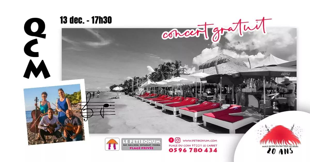 Concert de cordes et flûte traversière sur la plage du Coin, par la formation en quatuor ou quintette de QCM. Et pendant ce temps, le soleil nous recouvre de ses dernières couleurs. Entrée libreDîner + [...] |