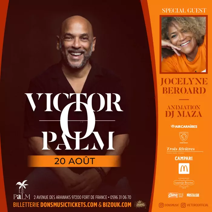 ![]() Victor O au Palm – Spécial Guest Jocelyne Beroard Le 20 Aout rendez-vous dans le cadre élégant du Palm pour une soirée concert exceptionnelle. Avec : Joël Jaccoulet • Christian Louiset • Boogly Andy • [...] |