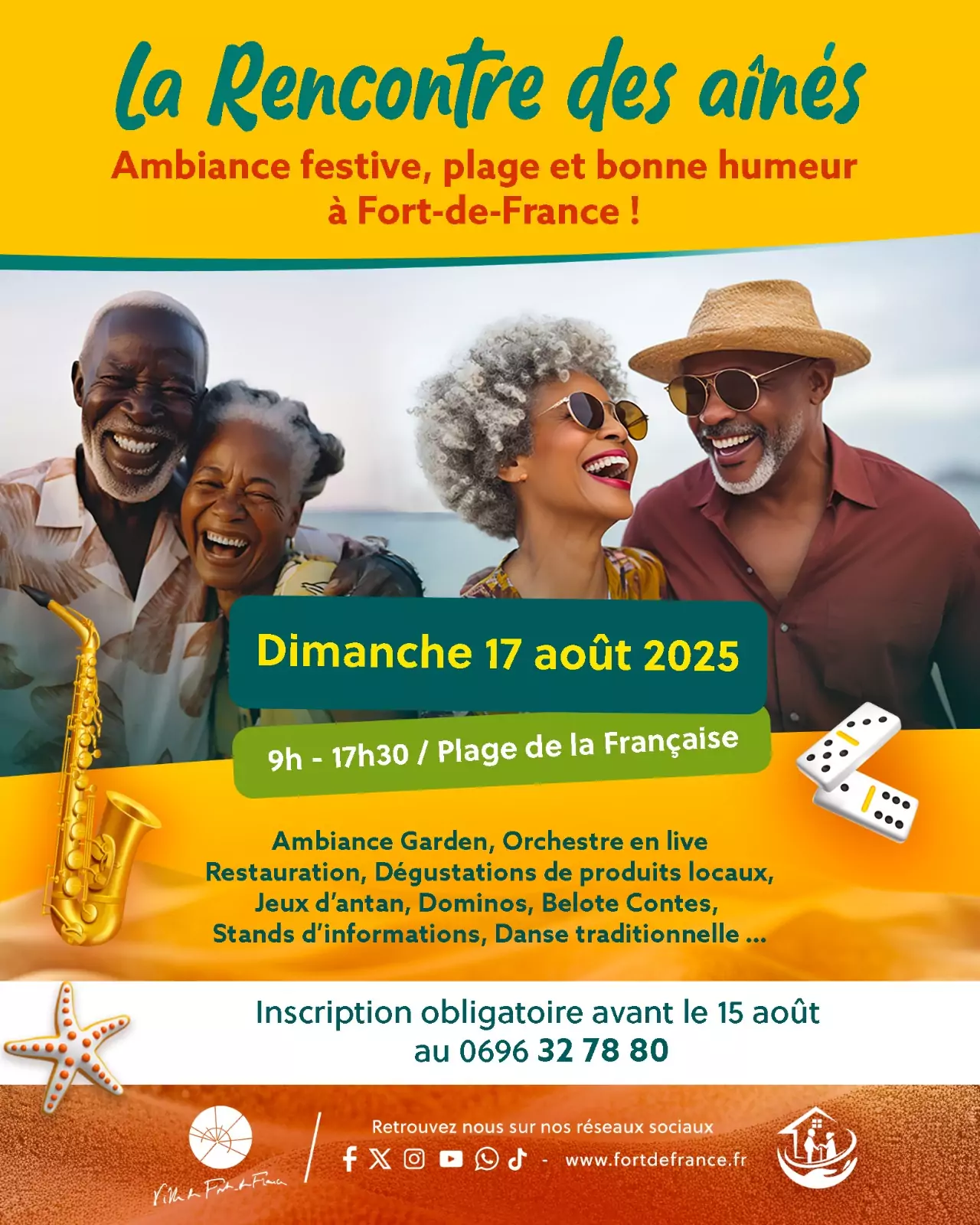 ![]() Dimanche 17 août, la Ville de Fort-de-France invite nos aînés à une Rencontre sur la plage de la Française ! Ambiance Garden, musique live, jeux d'antan, dominos, belote, contes et danse traditionnelle vous attendent pour [...]