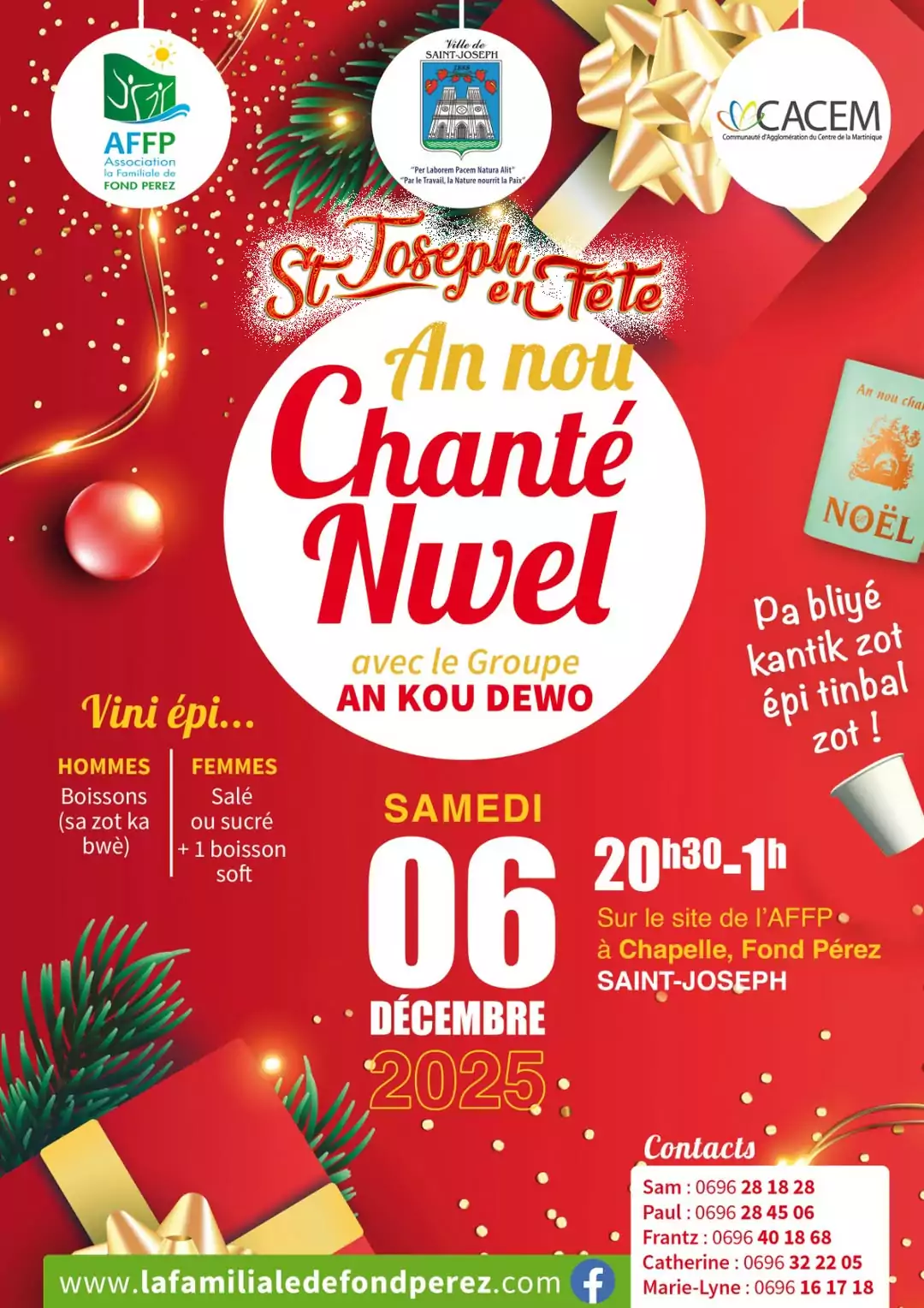 Rendez-vous le samedi 6 décembre 2025 à partir de 20h30 sur le site de l’AFFP à Chapelle, Fond Pérez pour partager ensemble la magie de Noël avec le groupe An Kou Dewo.Apportez vos kantik et [...]
