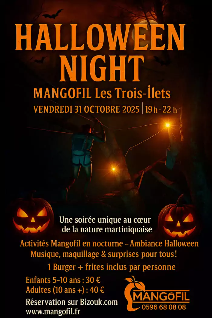 Une soirée magique et terrifiante au cœur de la nature martiniquaise ! À partir de 5 ans (accompagnement adulte obligatoire) Dernière initiation et départ à 21h pour le grand parcours (RED non inclus) Activités Mangofil [...] |