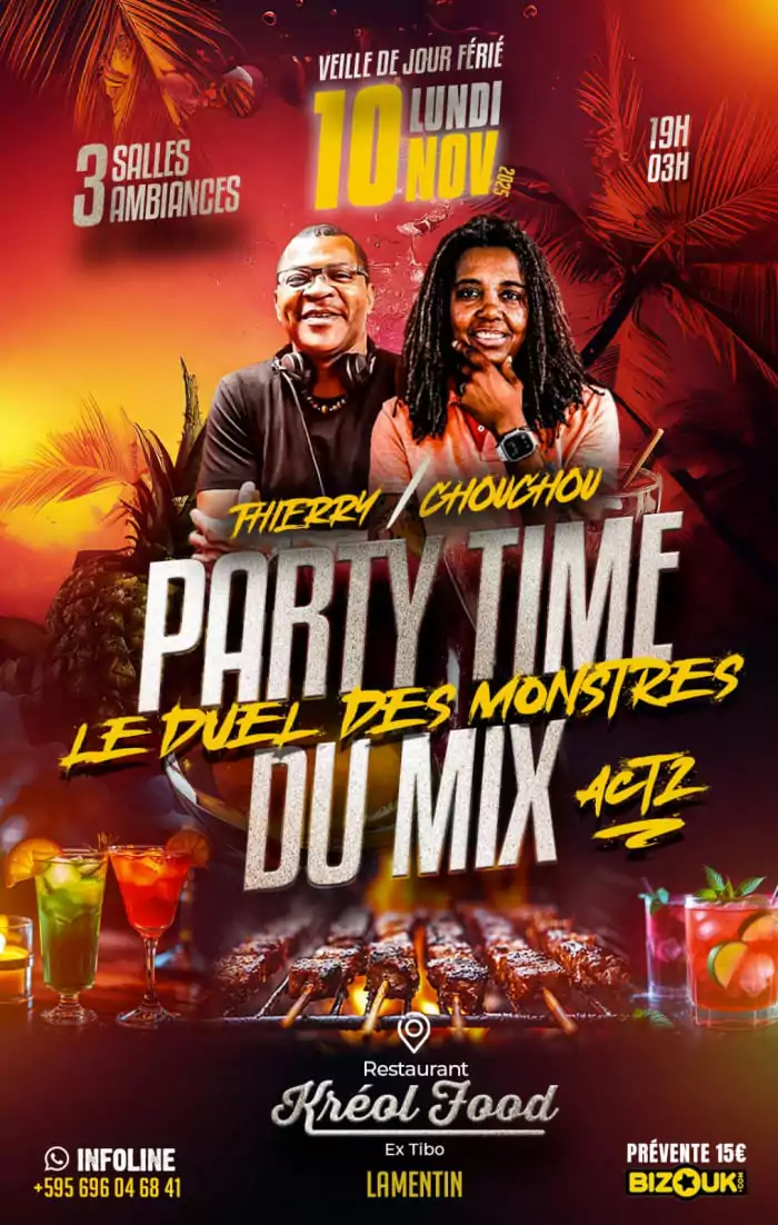 PROGRAMME 20H -21h : Cours KIZOMBA TTF SCHOOL 21h - 1h00: SESSION ET TRAINING By DJ C Infoline Whatsapp : 0696 060 639 LOCALISATION Kinky Mango, Lot. Les Hauts de Californie, Le Lamentin