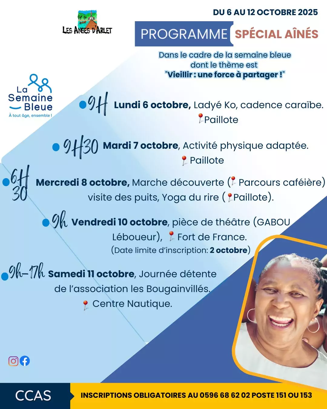 ![]() La Ville du François, en partenariat avec les associations « Les Azalées » et le Foyer Rural de Morne Acajou, a le plaisir de vous inviter à participer à la « 𝗠𝗮𝗿𝗰𝗵𝗲 𝗕𝗹𝗲𝘂𝗲 𝗜𝗻𝘁𝗲𝗿𝗴𝗲́𝗻𝗲́𝗿𝗮𝘁𝗶𝗼𝗻𝗻𝗲𝗹𝗹𝗲 » [...] ![]() La Semaine Bleue, temps fort national, dédié aux séniors, revient en 2025, avec un thème porteur d’optimisme et de solidarité : "Vieillir, une force à partager". Parce que l’âge n’est pas une limite, mais une [...] |