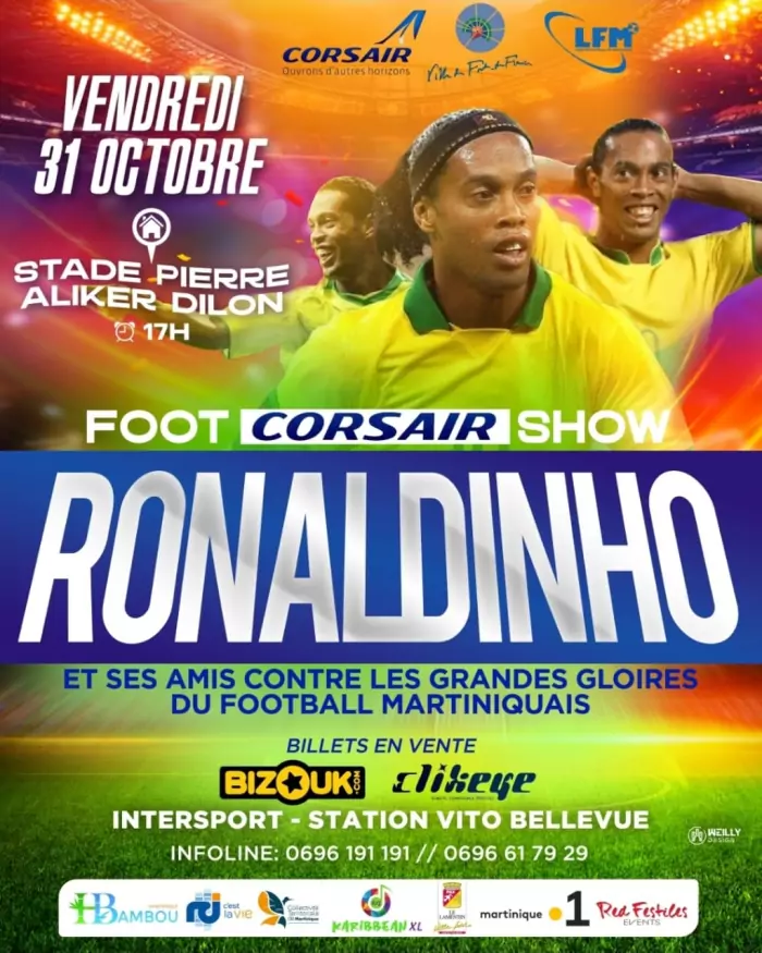 Ronaldinho - Grand Match De Gala En Martinique L’un des plus grand joueur de football de tout les temps RONALDINHO (Barça - Brésil - PSG) en Martinique pour la première fois. RONALDHINIO accompagné de ses [...] ![]() Journée 4 vendredi 10 octobre 2025 - 20H00 EMULATION - C. FRANCISCAIN vendredi 10 octobre 2025 - 20H00 GOLDEN LION - GOLDEN STAR vendredi 10 octobre 2025 - 20H00 AIGLON - C. COLONIAL vendredi 10 [...] |