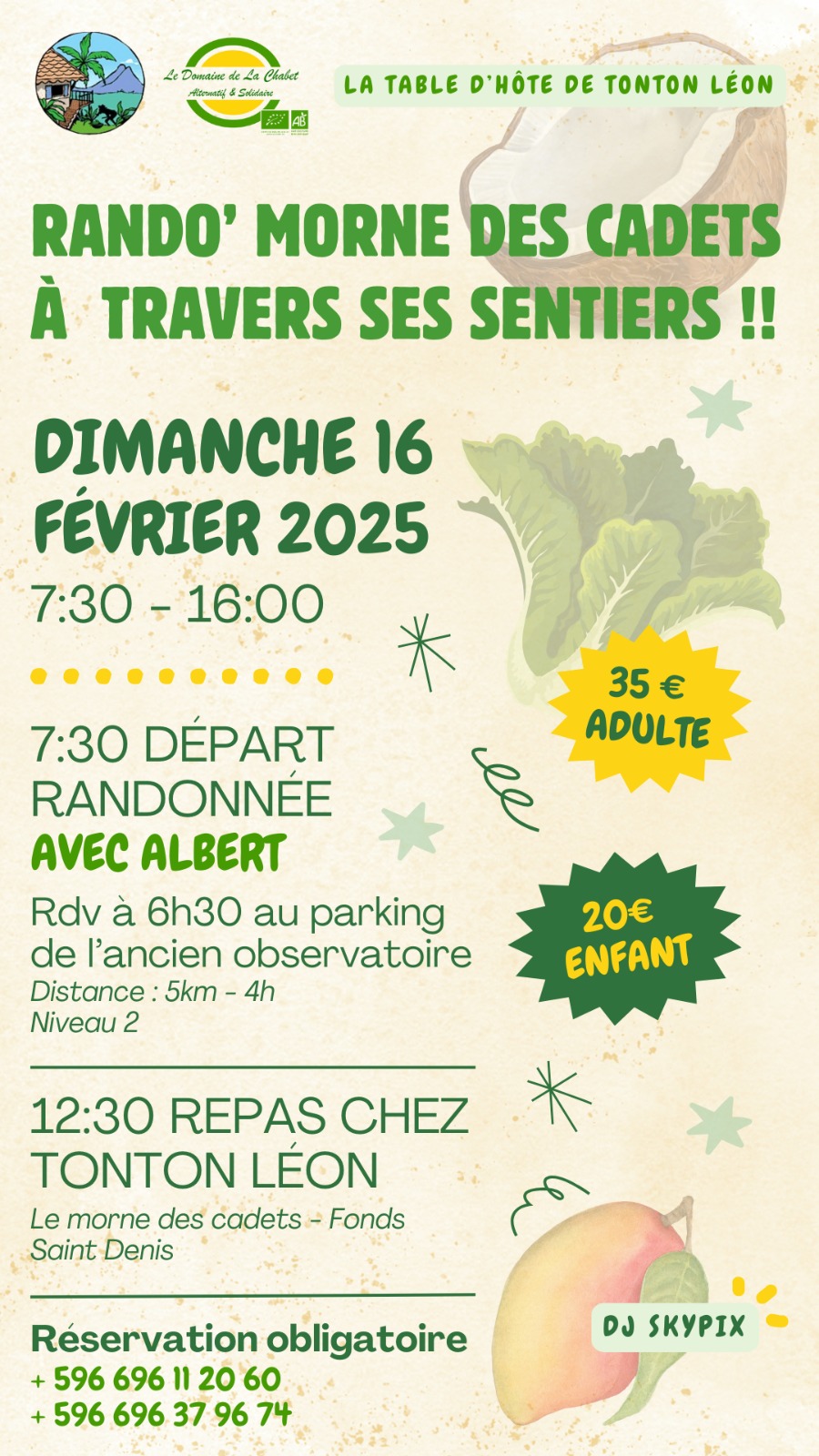 ![]() Tonton Léon, Morne des Cadets , Fond-Saint-Denis, 0696 81 01 80, lesamisdetontonleon@gmail.com Située à Fond Saint Denis, Le domaine de la Chabet est une association qui fédère des agriculteurs bio pour valoriser une agricuture [...] |