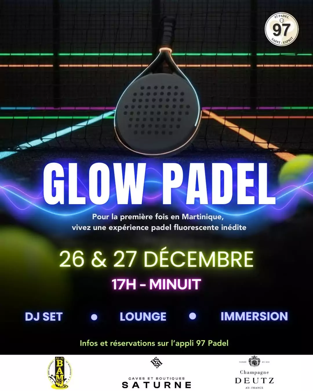 Venez vivre en exclusivité 2 soirées uniques mêlant sport, lumières et ambiance électrisante pour terminer l’année en beauté ! Places limitées Infos et réservations sur l’application 97 Padel 97 Padel, Zac de l’avenir, Saint Esprit, [...]
