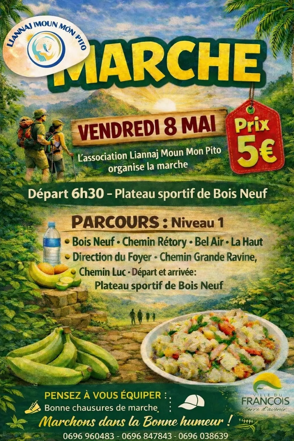 𝐓𝐑𝐎𝐏𝐈𝐂𝐀𝐋 𝐖𝐎𝐎𝐃 𝐌𝐎𝐑𝐍𝐈𝐍𝐆 : randonnée pédestre 𝐅𝐎𝐈𝐑𝐄 𝐀𝐆𝐑𝐈𝐂𝐎𝐋𝐄 : production locale 𝐂𝐄𝐑𝐄𝐌𝐎𝐍𝐈𝐄 𝐎𝐅𝐅𝐈𝐂𝐈𝐄𝐋𝐋𝐄 : messe, dépôt de gerbe, défilé, allocutions 𝐁𝐀𝐋 𝐏𝐎𝐏𝐔𝐋𝐀𝐈𝐑𝐄 : pôt de l'amitié en musique 𝐋𝐀𝐊𝐎𝐔 𝐋𝐄𝐊𝐎𝐋 : animations pour enfants 𝐋𝐀 [...] |
