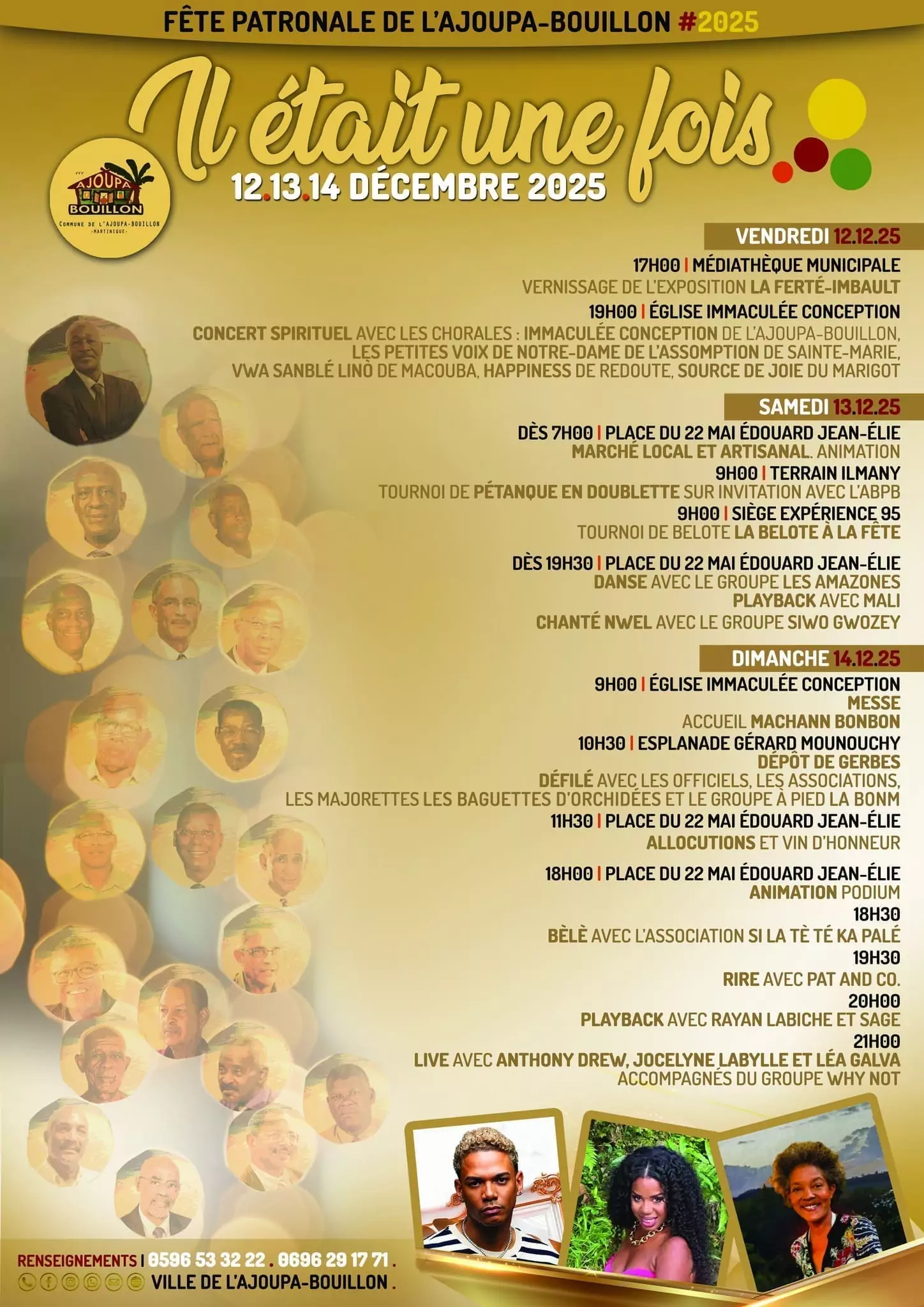Ville de Ducos𝗖𝗛𝗔𝗡𝗧𝗘́ 𝗡𝗪𝗘𝗟 𝗔𝗡𝗧𝗔𝗡 𝗟𝗢𝗡𝗧𝗔𝗡 En collaboration avec la Ville de Ducos, l'Association Le Roseau vous invite à revivre la magie de Noël comme autrefois : Départ de la ribote – Quartier Morne-Vert, suivie du Kantik au [...]