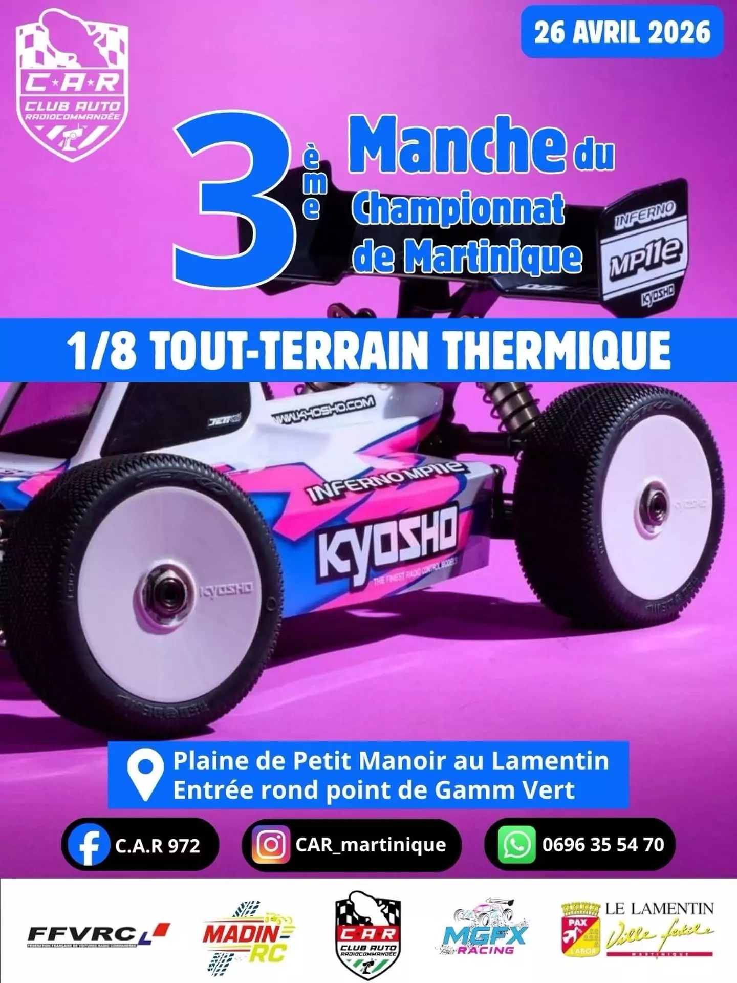 3ème manche du Championnat de Martinique TT 1/8 Thermique Le Club Auto Radiocommandée (C.A.R 972) vous donne rendez-vous pour une nouvelle journée pleine d’adrénaline ! Au programme : vitesse, maîtrise et spectacle avec les meilleurs [...]