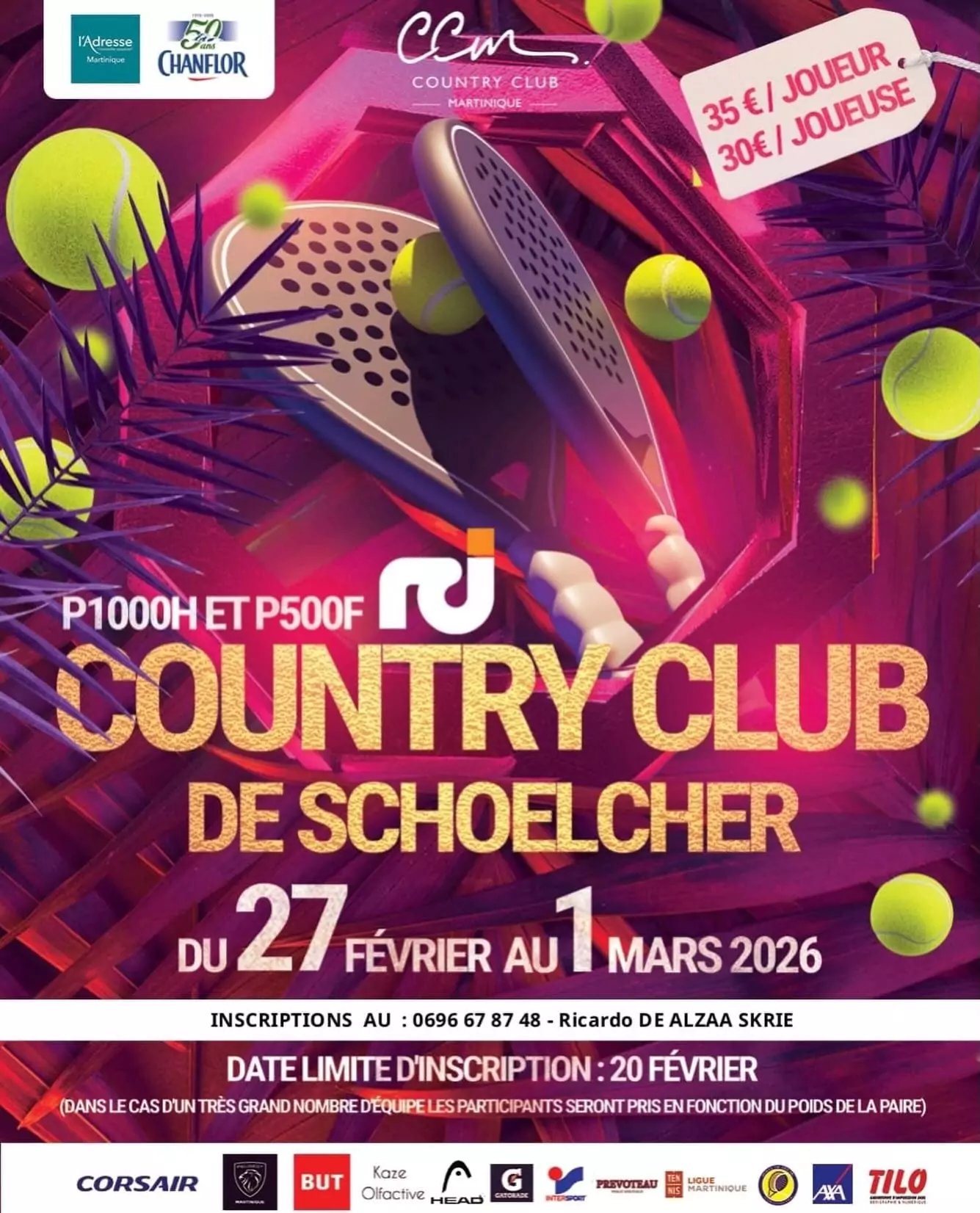 Du 27 février au 1er mars, le Country Club de Schoelcher accueille 2 grands rendez-vous padel : Tournoi P1000 Hommes Tournoi P500 Femmes 3 jours de compétition intense, de performance et de spectacle avec les [...]