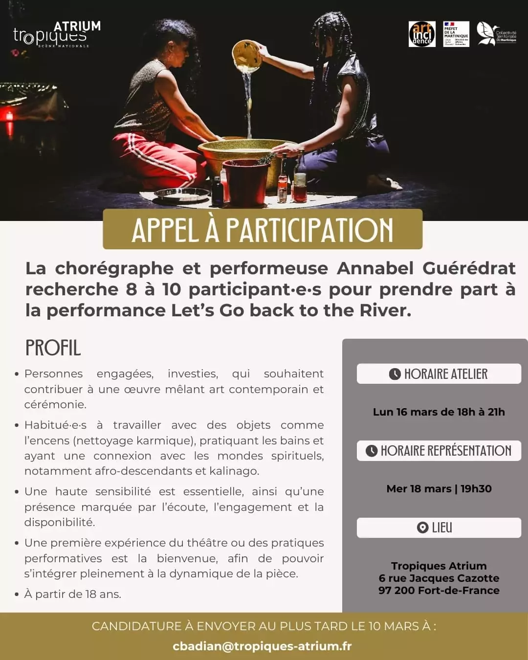 Appel à participation : Let's go back to the riverLa chorégraphe et performeuse Annabel Guérédrat recherche 8 à 10 participants·e·s, complices, pour prendre part à la performance Let’s go back to the river. Pour cette [...]