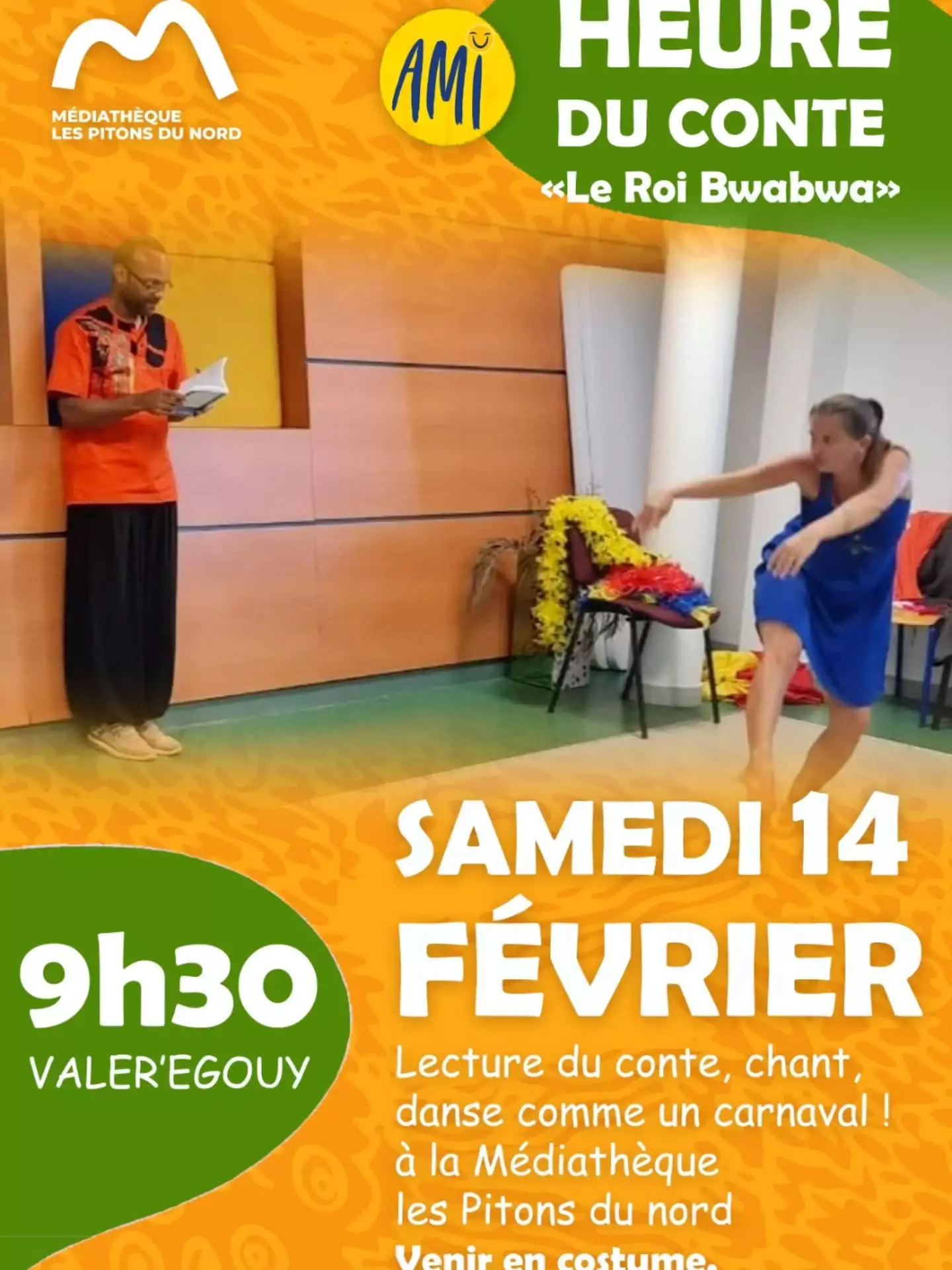 LECTURE EXPRESSIVE « LE ROI BWABWA » PAR VALER’ÉGOUY À LA MÉDIATHÈQUE LES PITONS DU NORD, LE CARBET