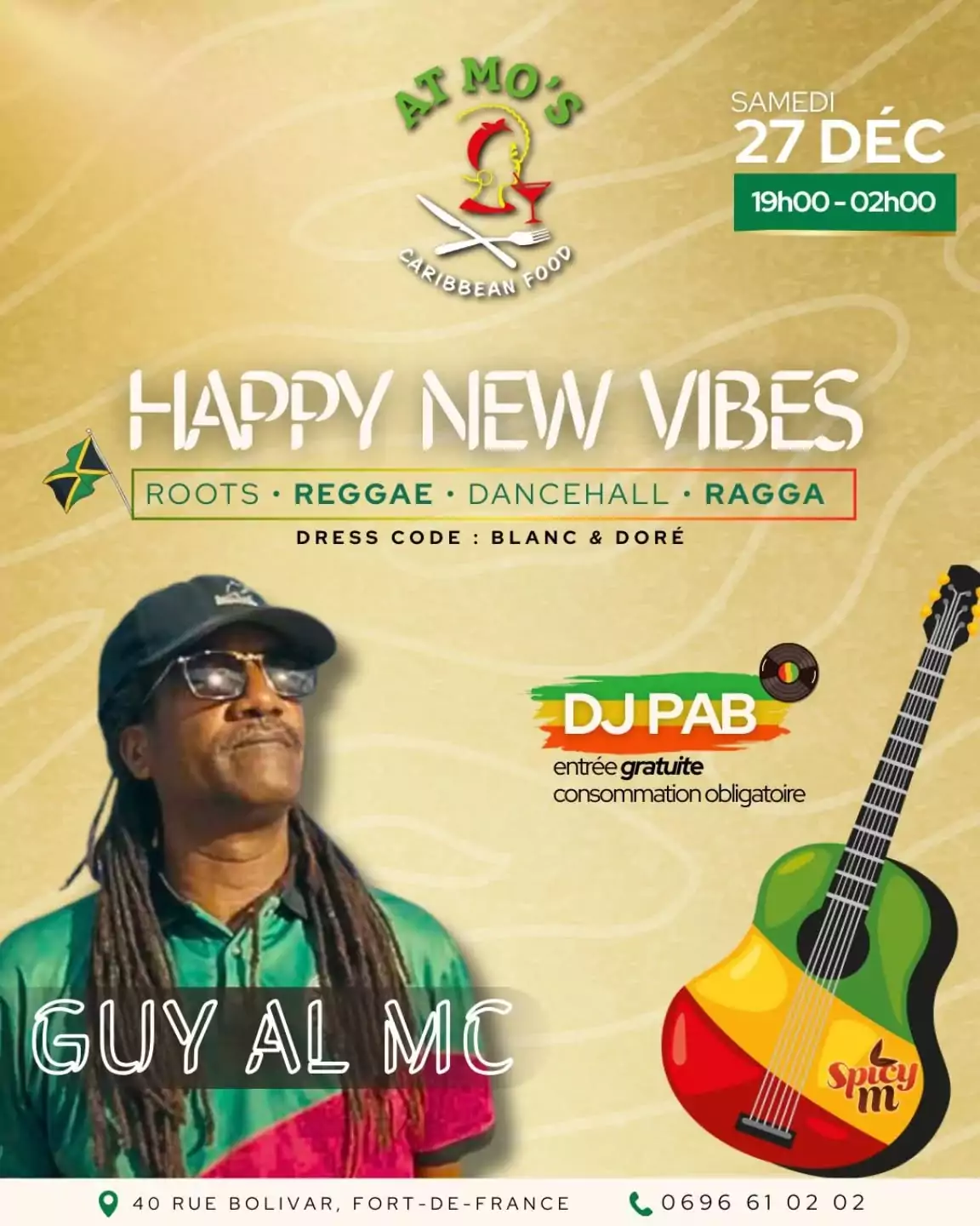 At Mo's Caribbean Food 40 rue Bolivar, Fort-de-France, MartiniqueHAPPY NEW VIBES Roots • Reggae • Dancehall • RaggaViens t’ambiancer avec DJ PAB GUY AL MC en show caseDress code : blanc & doréEntrée gratuite Consommation obligatoire At Mo's Caribbean Food, 40 rue Bolivar, [...]