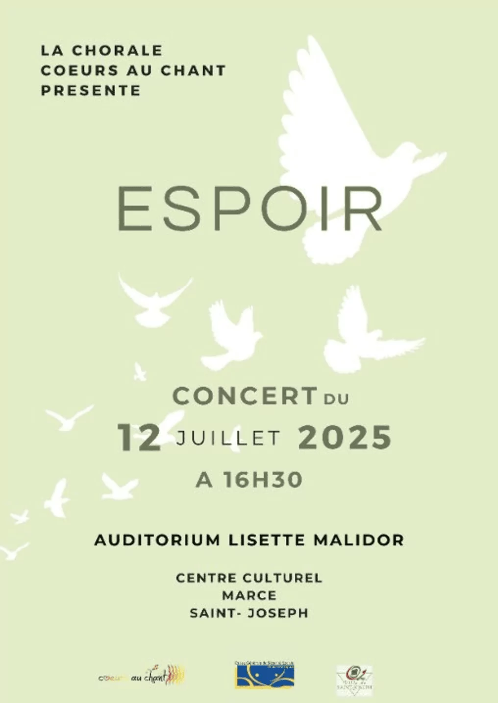 La ville de Saint-Joseph a le plaisir d’accueillir le concert annuel de la chorale Cœurs au Chant intitulé « Espoir », qui se tiendra le samedi 12 juillet 2025 à 16h30, à l’Auditorium Lisette Malidor du Centre [...]