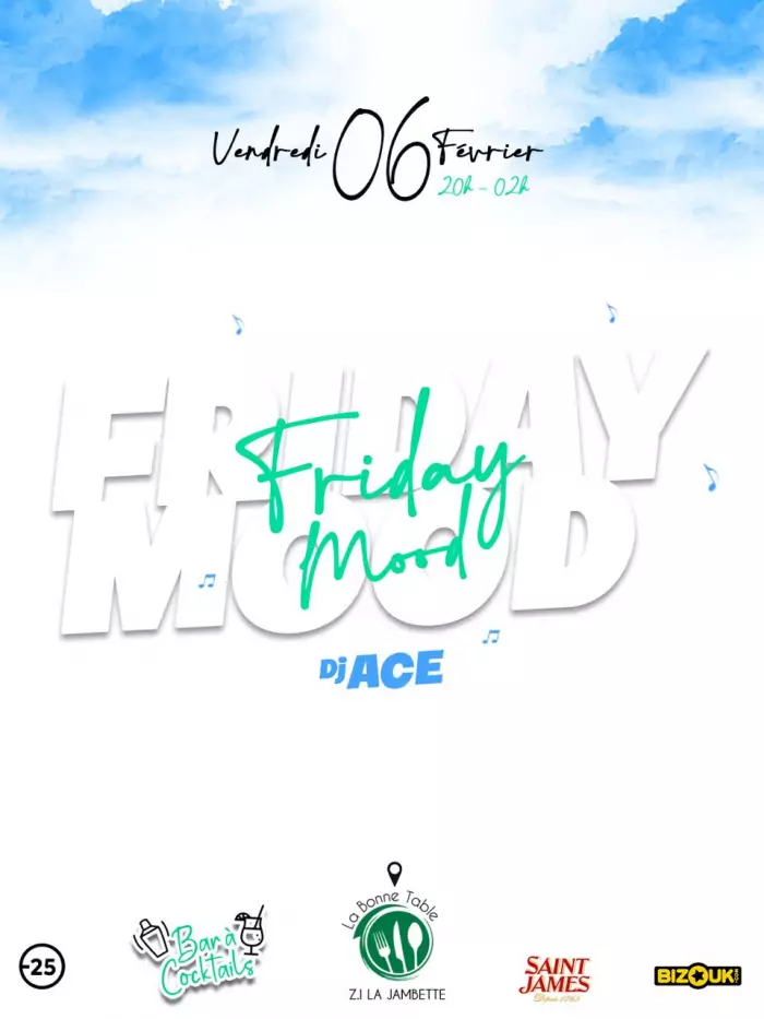 SOIRÉE DJ « FRIDAY MOOD » À LA BONNE TABLE, LE LAMENTIN