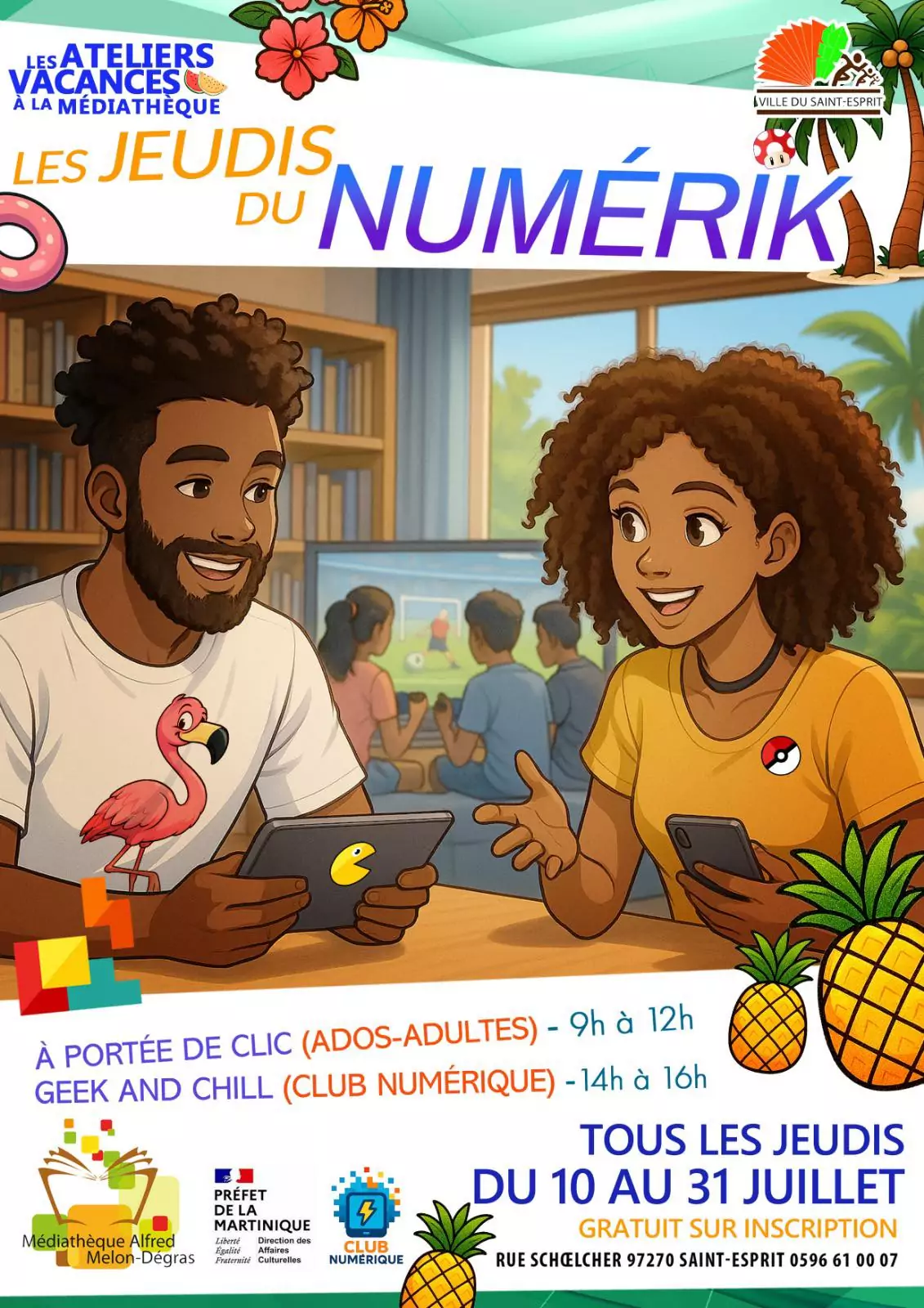 𝐋𝐞𝐬 𝐉𝐞𝐮𝐝𝐢𝐬 𝐝𝐮 𝐍𝐮𝐦𝐞́𝐫𝐢𝐤 𝐝𝐞́𝐛𝐚𝐫𝐪𝐮𝐞𝐧𝐭 𝐚̀ 𝐥𝐚 𝐌𝐞́𝐝𝐢𝐚𝐭𝐡𝐞̀𝐪𝐮𝐞 𝐝𝐮 𝐒𝐚𝐢𝐧𝐭-𝐄𝐬𝐩𝐫𝐢𝐭 ! 𝐃𝐮 𝟏𝟎 𝐚𝐮 𝟑𝟏 𝐣𝐮𝐢𝐥𝐥𝐞𝐭, participe à des ateliers gratuits, pour apprendre, créer et t’amuser autour du numérique. 𝐀̀ 𝐩𝐨𝐫𝐭𝐞́𝐞 𝐝𝐞 𝐜𝐥𝐢𝐜 (𝟗 𝐡–𝟏𝟐 [...]