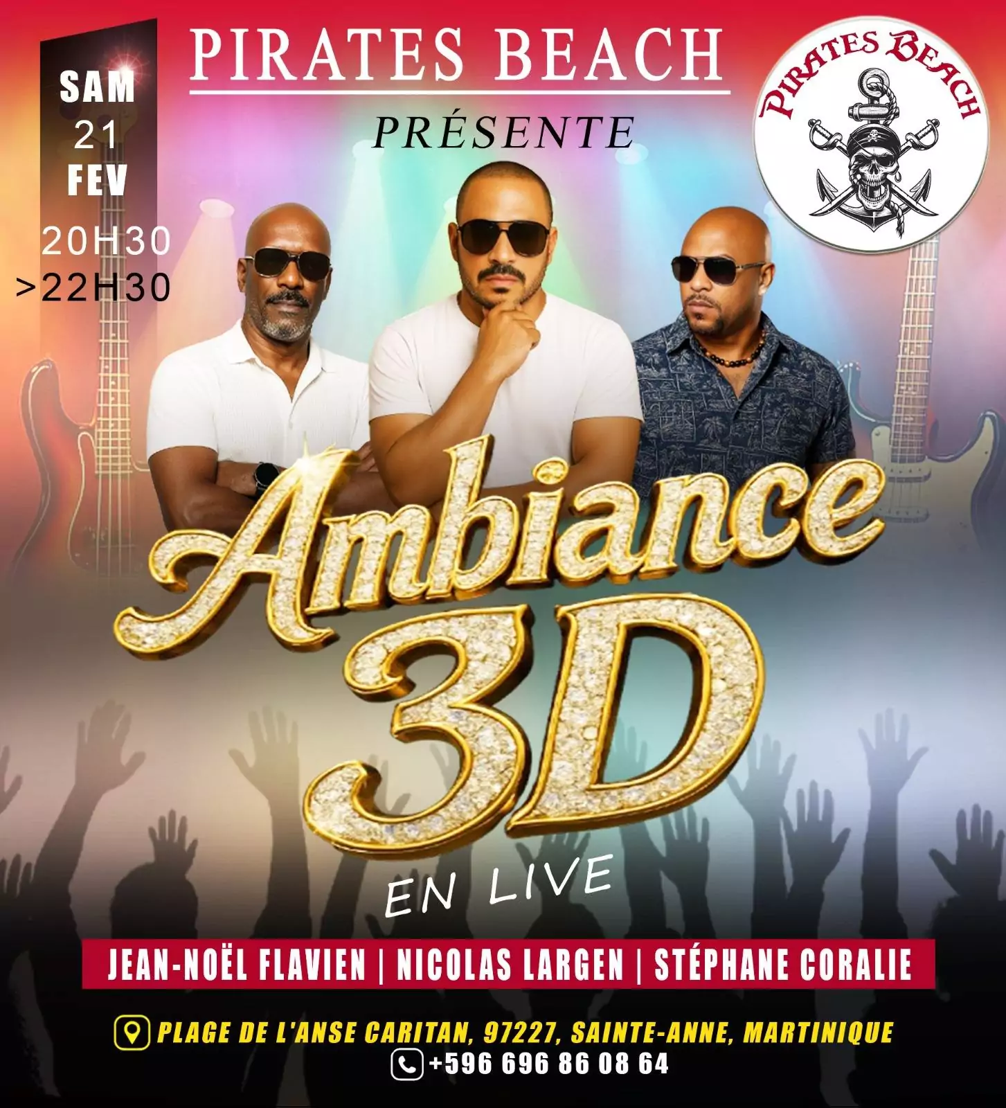 MUSIQUE LIVE « AMBIANCE 3D » AU PIRATES BEACH, SAINTE ANNE