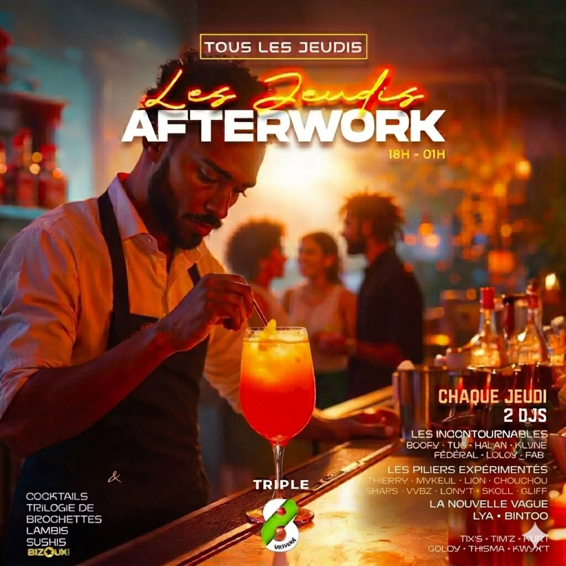 SOIRÉE DJ « LES JEUDIS AFTERWORK » AU TRIPLE 8, DUCOS