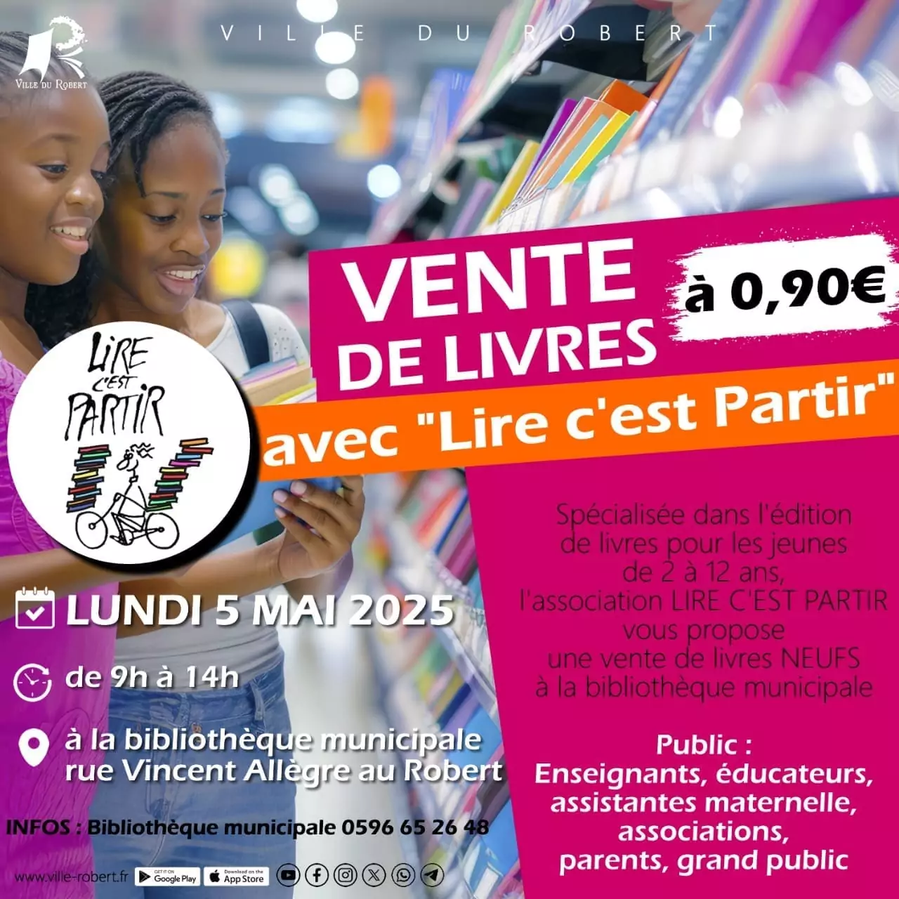 Spécialisée dans l'édition de livres pour les jeunes de 2 à 12 ans, l'association LIRE C'EST PARTIR vous propose une vente de livres NEUFS à la bibliothèque municipale au tarif de 0,90€. Public : Enseignants, [...]