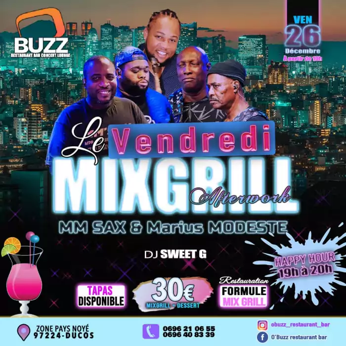 2 Ambiances 100% plaisir Salsa/Zouk Ce Samedi 18 Avril autour d'un repas Mix Grill le Restaurant O’Buzz reçoit le groupe SALSADICCION en live Zouk by DJ Mich : 50% nouveautés, 50% nostalgie ! Salsa by VDJ [...]