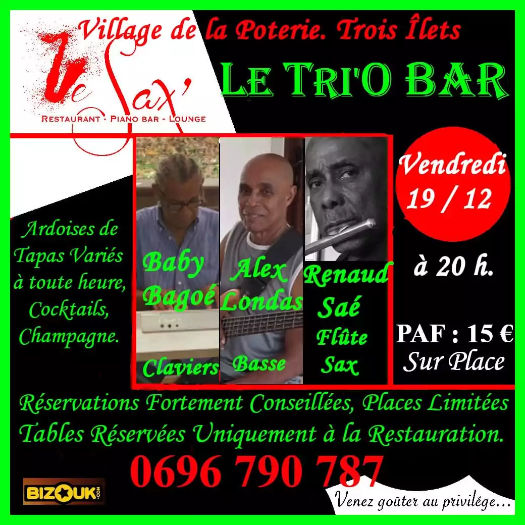 MUSIQUE LIVE « LE TRI’O BAR » À LE SAX, LES TROIS ÎLETS