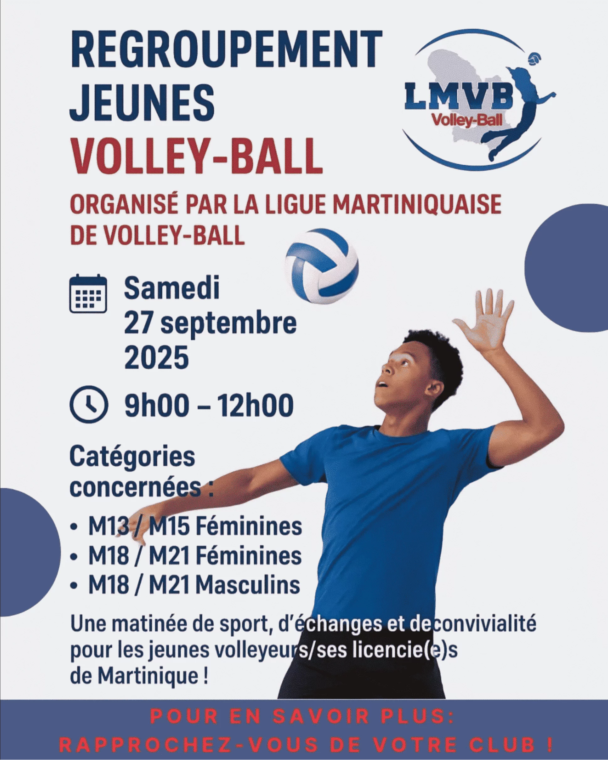 PLAYOFF BEACH VOLLEY - SAISON 2024/2025 Les meilleures paires féminines de la Martinique sont prêtes à en découdre sous le soleil et sur le sable pour décrocher le titre ! Venez nombreux les encourager et [...]