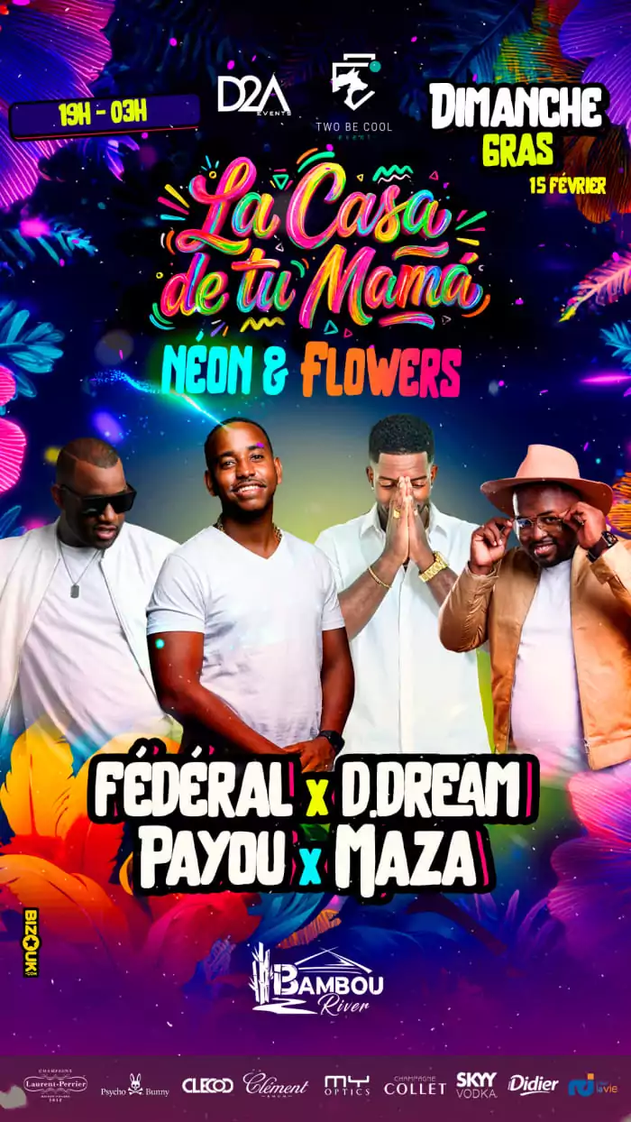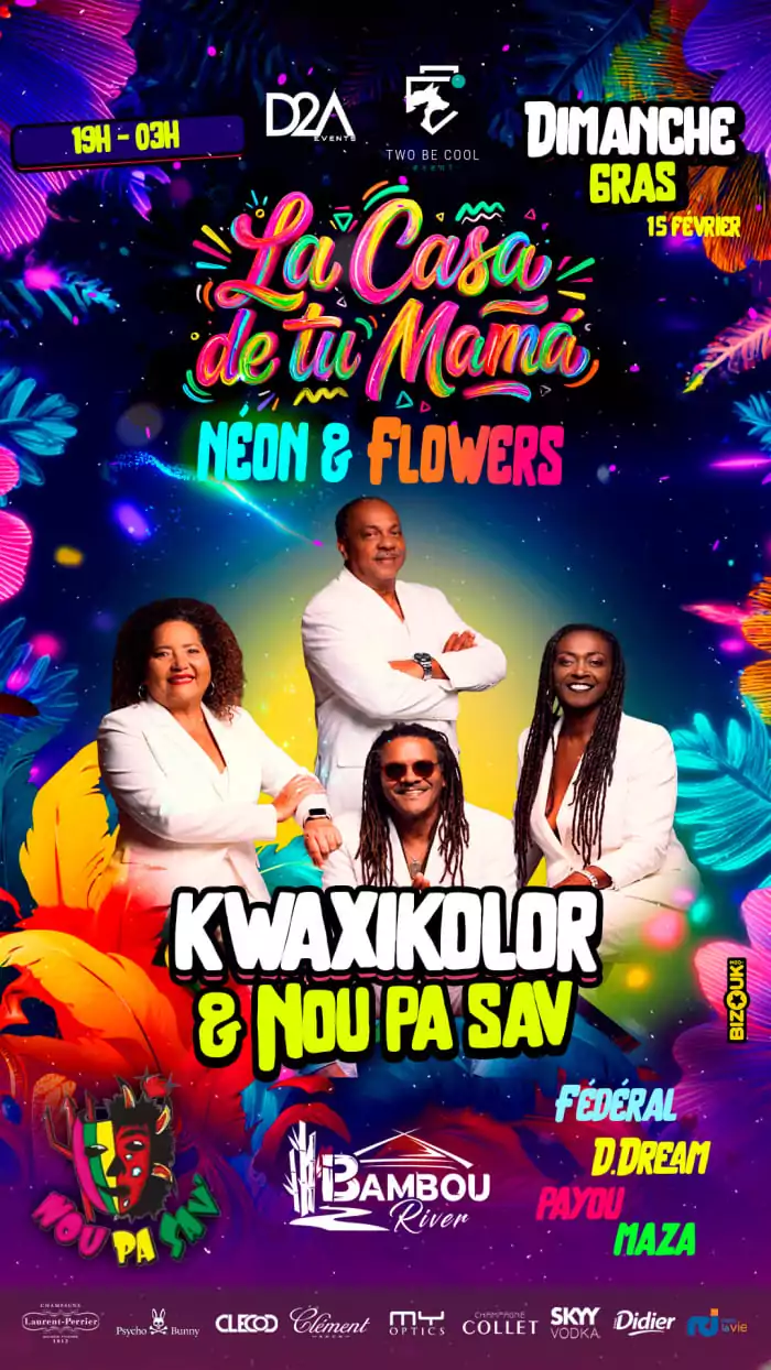 SOIRÉE DIMANCHE GRAS « LA CASA DE TU MAMA » AU BAMBOU RIVER, SAINTE LUCE