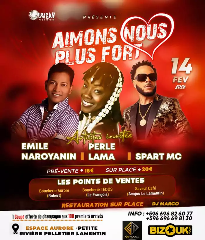 SOIRÉE SAINT VALENTIN « AIMONS NOUS PLUS FORT » À L’ESPACE AURORE, LE LAMENTIN
